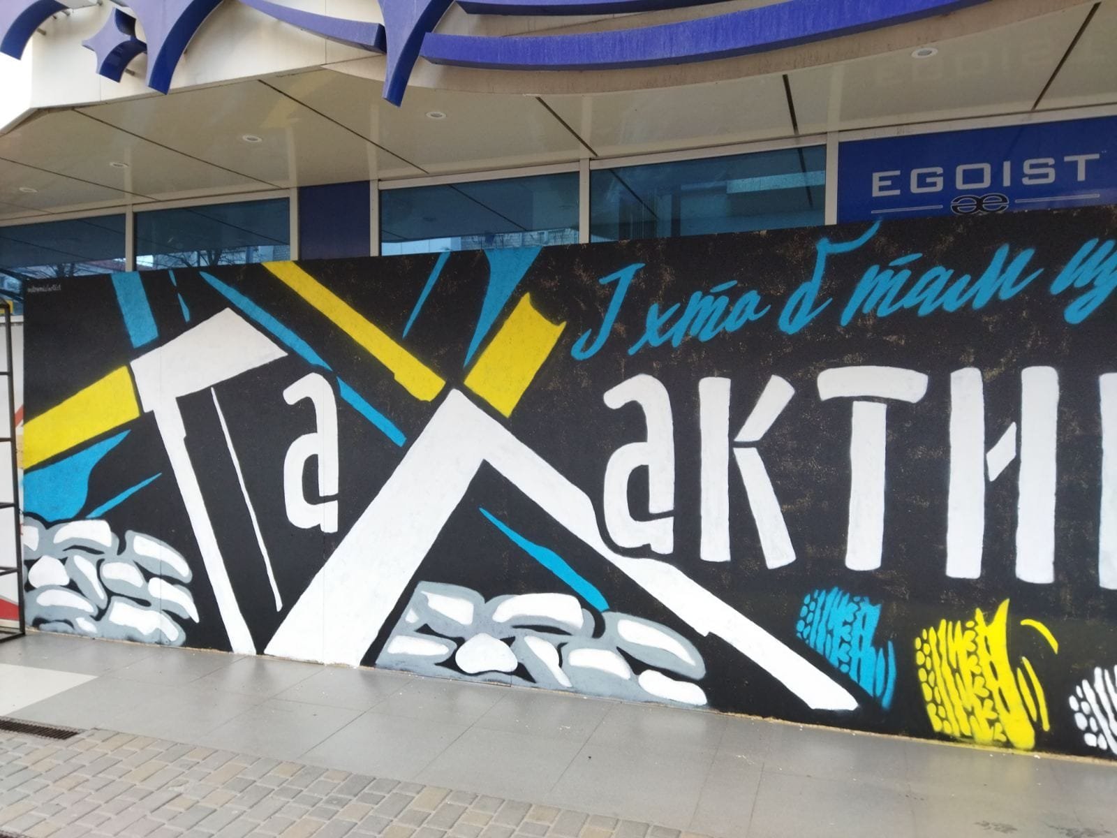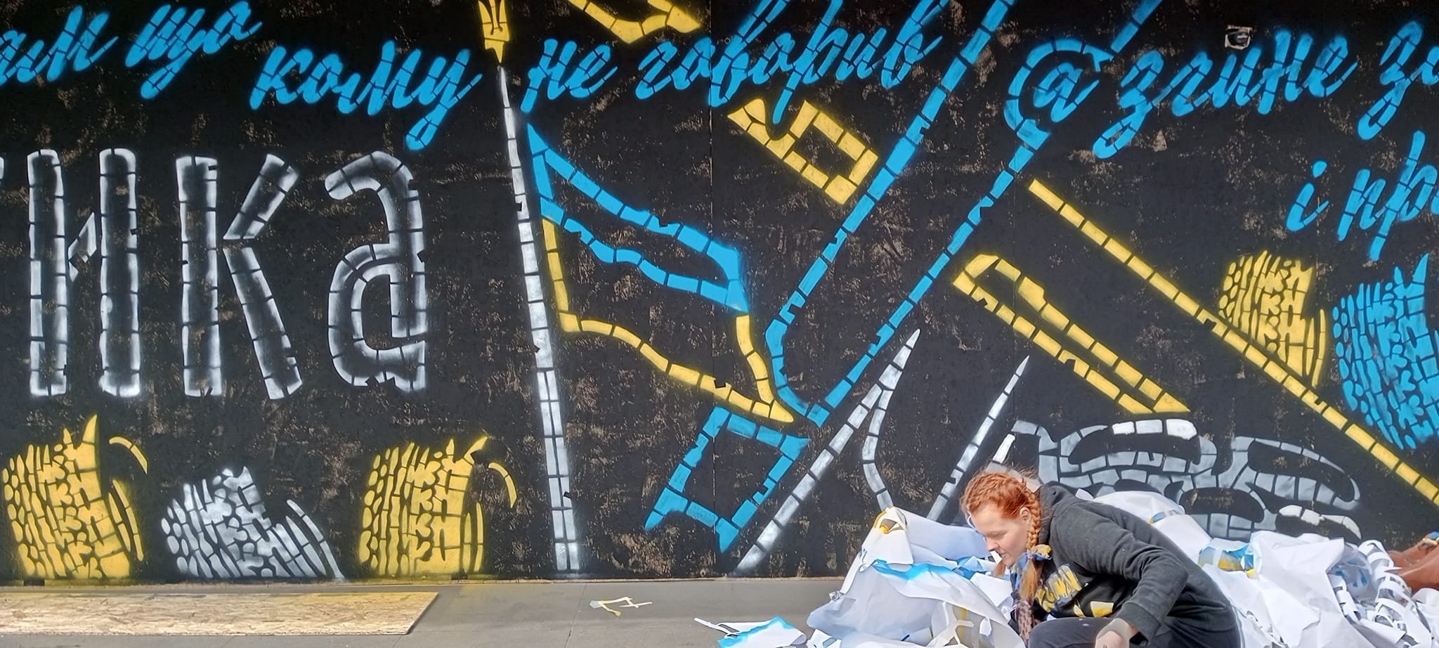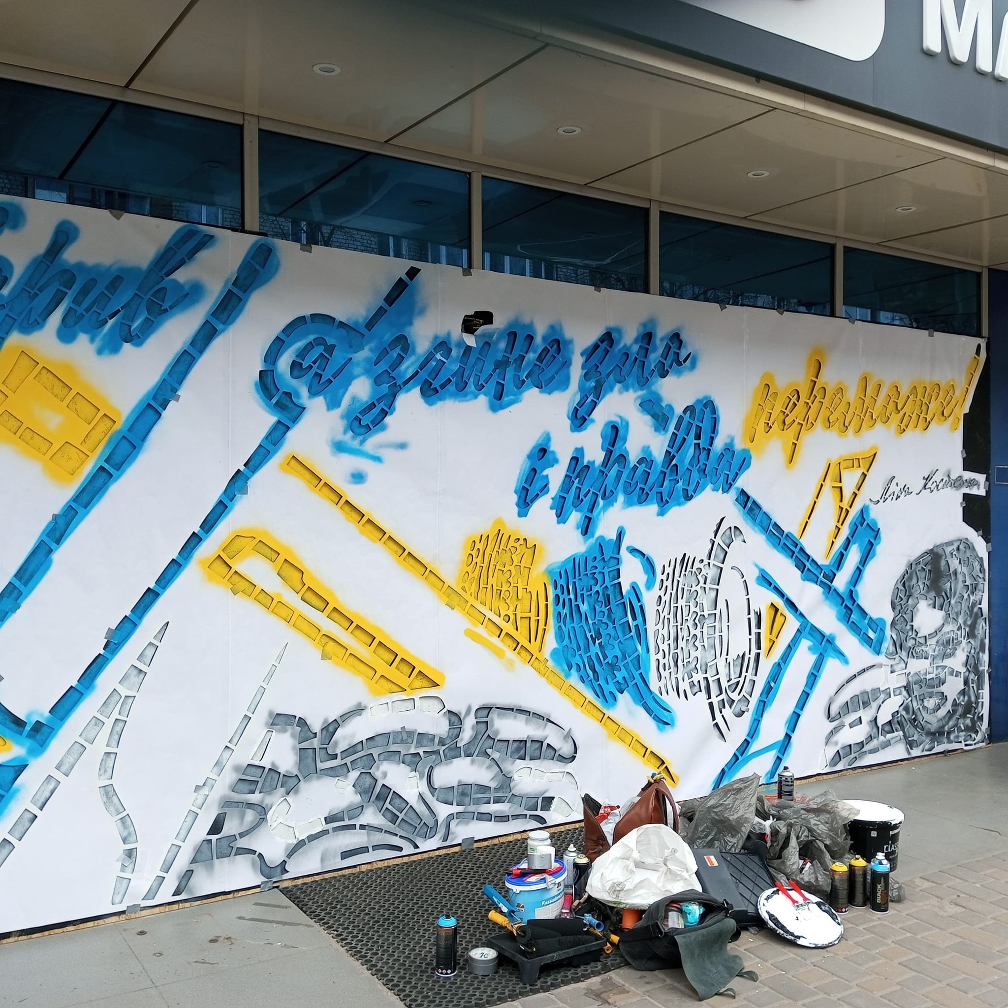 На торговому центрі «Галактика» у центрі Кременчука з’явилося патріотичне графіті з Ліною Костенко. Вчора, 9 квітня, над ним попрацював художник Сергій Брильов разом з командою однодумців.