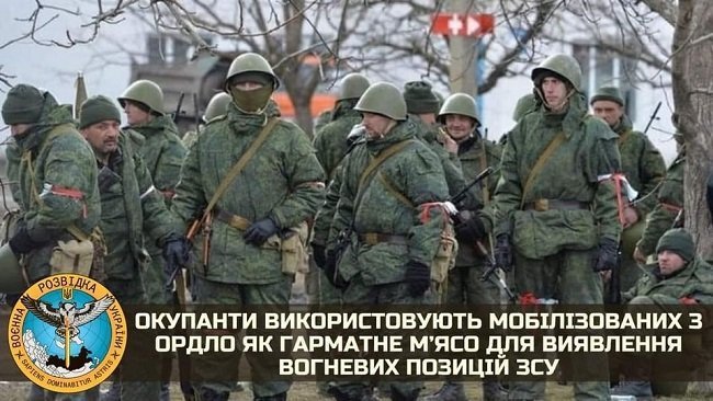 Головне управління розвідки Міністерства оборони України на своїй сторінці у Фейсбуці інформує про те, що на окупованих територіях Донецької та Луганської областей росіяни посилено мобілізують усіх чоловіків віком від 18 до 65 років. На «гарматне м’ясо» забирають навіть інвалідів дитинства та співробітників «стратегічних підприємств». Відтепер жодна «бронь» вже нікого не рятує від відправки на фронт – на «забій». Чоловіків шукають обходячи квартири, а повістки видають навіть на постах ДАІ усім, хто знаходиться в автомобілях.
