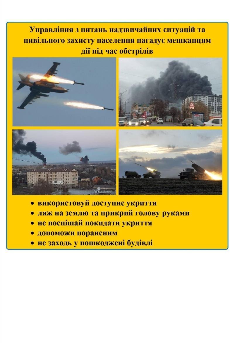 Управління з питань надзвичайних ситуацій та цивільного захисту населення нагадує мешканцям, як потрібно діяти під час обстрілів: