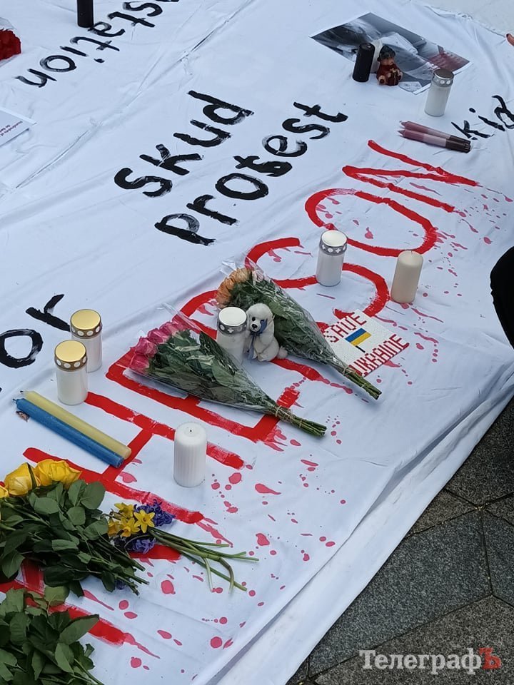 Наприкінці ходи учасники поклали ляльок-немовлят на дорогу, нагадуючи про загиблих дітей в Україні, тримаючи транспарант з написом «Врятуйте наших дітей».