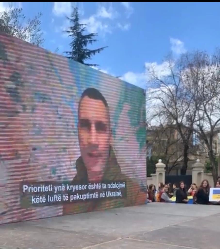 Цього дня сотні українців та місцевих мешканців зібралися на площі Скандербега у самісінькому центрі міста та пройшли до скверу Трьох братів Фрашері біля посольства держави-агресора, що знаходиться на вулиці Вільної України.
