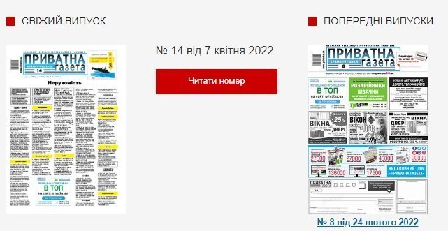 Для цього вам треба перейти на вкладку «Приватна газета», яка знаходиться на верхній панелі сайту. Далі ви розгортаєте свіжий випуск «Приватної газети» в електронному вигляді.