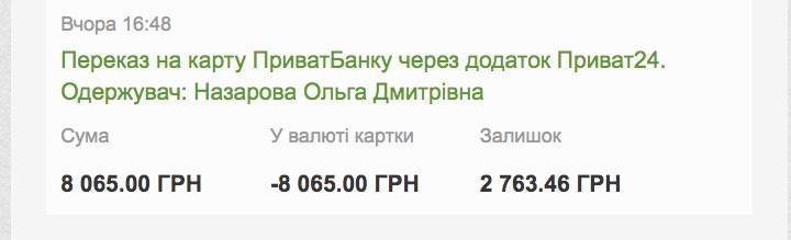 Отже більшу частину з цих залишків коштів (8065 грн) вчора він витратив на допомогу військовим – на ремонт автівки для героїчних «Айболітів».