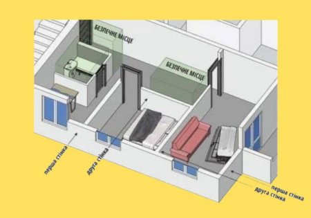 Якщо ви вирішили залишитися вдома, то від небезпеки вас має відділяти щонайменше 2 стіни. Одна ймовірно, зруйнується від удару, а друга візьме на себе уламки стіни, віконного скла тощо. Тому ховатися безпечно у місці, яке розташоване за другою від фасаду опорною стіною. Зазвичай це тамбур, коридор або передпокій. Навіть якщо вам здається, що будинок нестійкий, підвалу нема, а в сховищі немає місця, лишайтеся біля опірних стін - вони витримають.