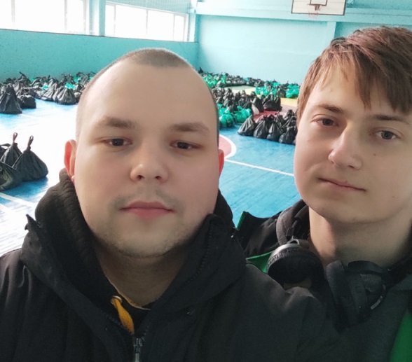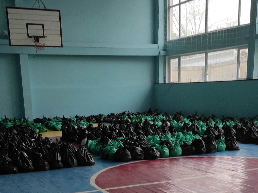 Робота тривала в одній зі шкіл на Молодіжному. Тут, за згодою з дирекцією навчального закладу, розміщений волонтерський центр, у якому волонтери формували продуктові набори. Стандартний пакунок складався з консервів, круп, рису, макаронів, борошна, соняшникової олії, картоплі тощо. Також цього разу вдалося додати до наборів і ковбасу.