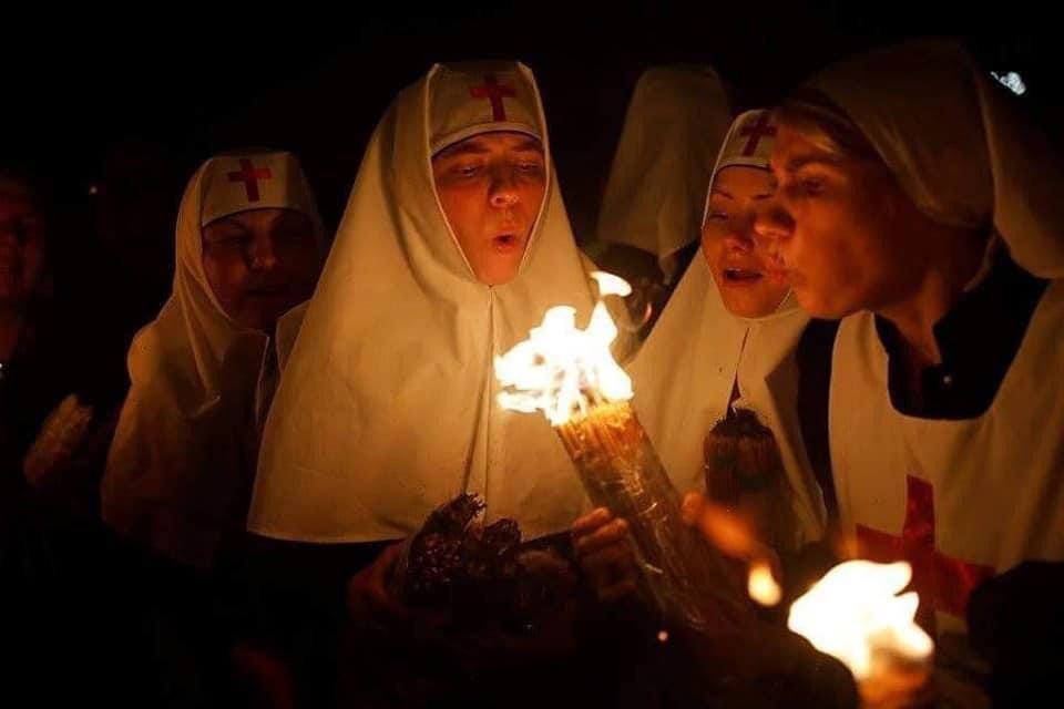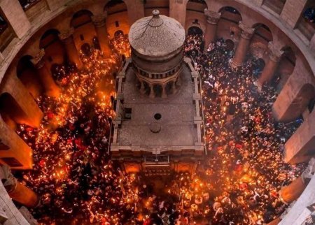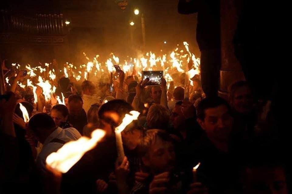 Християни східного обряду чекають на сходження Благодатного вогню щороку у Велику суботу перед Великоднем. Вогонь символізує перемогу Воскресіння Христа та світла над земним злом.