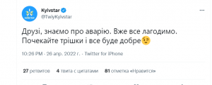 Друзі, знаємо про аварію. Вже все лагодимо. Почекайте трішки і все буде добре, - йдеться в повідомленні.