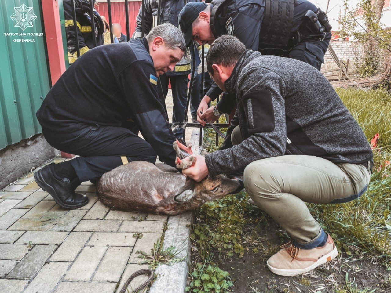 Зранку 27 квітня у центрі Кременчука поліцейські спільно з рятувальниками впіймали козулю. Про це повідомила пресслужба патрульної поліції.