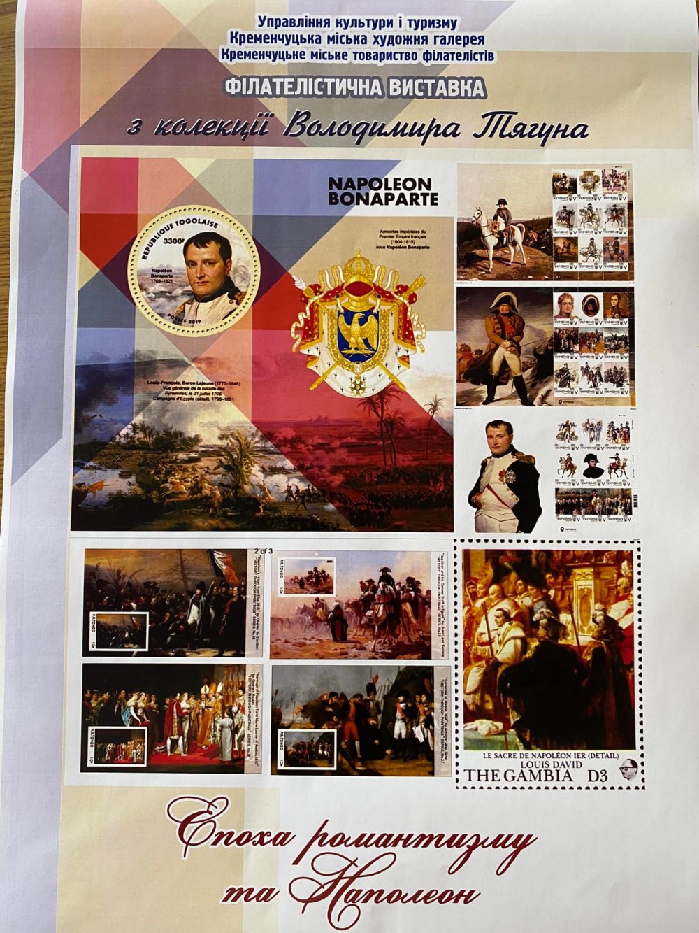 Завтра, 5 травня, у Кременчуцькій художній галереї відкриється одразу дві виставки. Філателістична виставка «Епоха романтизму і Наполеон» з колекції Володимира Тягуна.