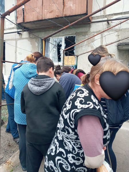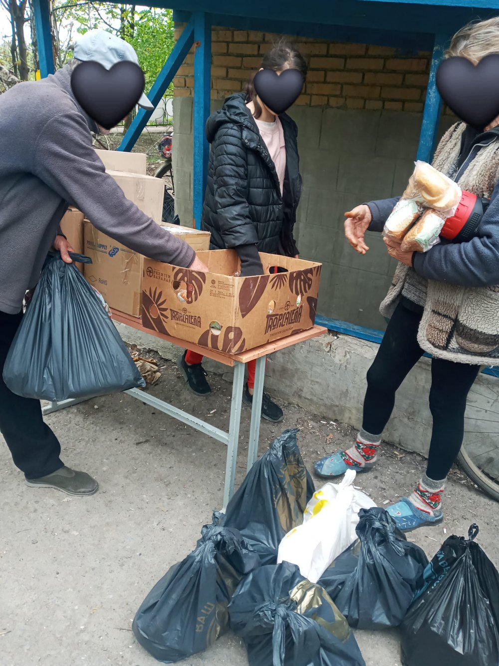 Ми привезли продуктові набори на кожного, свіжий хліб, медикаменти, засоби гігієни, дітям взяли багато солодощів та смакот, привезли газові пальники, примуси та багато газових балонів. Готують люди у підвалах, на вулиці це зробити неможливо.