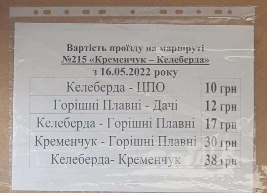 Тепер проїзд з Кременчука до Горішніх Плавнів коштує 30 грн, а до Келеберди – 38 грн.