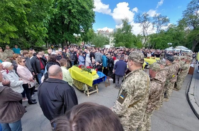 18 травня у Полтаві біля Свято-Успенського кафедрального собору прощалися з вісьмома українськими воїнами, які віддали свої життя за Батьківщину.