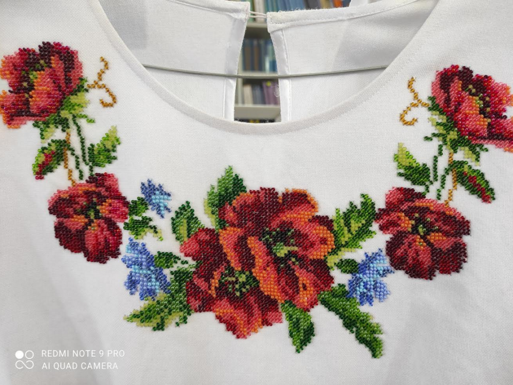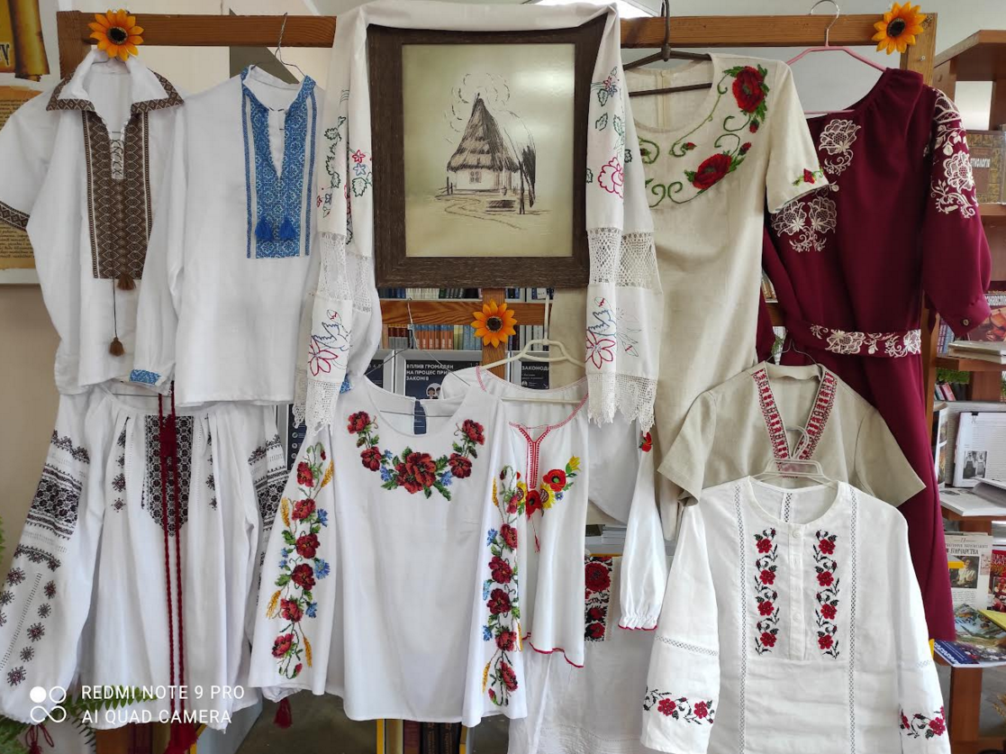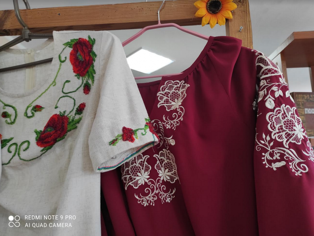 Більшість представлених на виставці робіт виконані співробітниками бібліотеки та членами їх родин. Директор бібліотеки Олена Швець також надала власні вишивки. Вона розповіла: