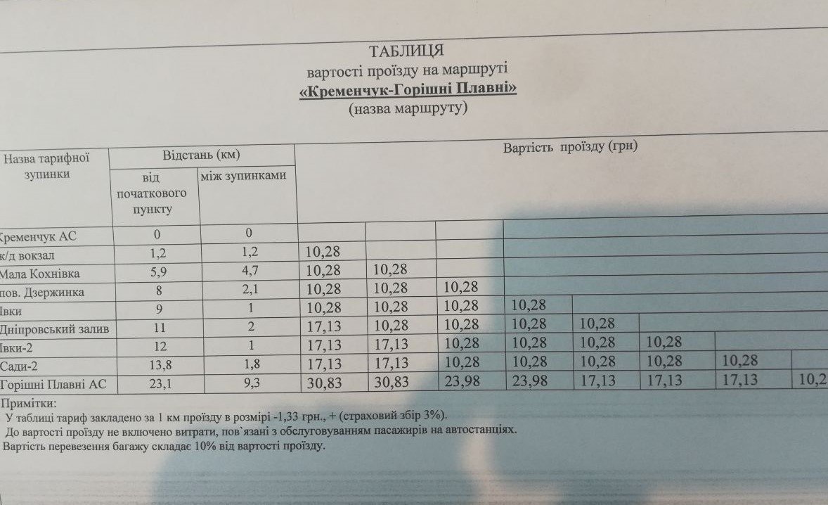 Нагадаємо, з 16 травня у Кременчуцькому районі приблизно на 30% подорожчали тарифи на приміські пасажирські перевезення. Скільки наразі коштує добратися до Горішніх Плавнів, Глибиного чи Піщаного можна подивитись ТУТ.