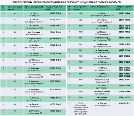 Обласне управління Пенсійного фонду України оприлюднило перелік сервісних центрів, до яких можна звернутися для вирішення пенсійних питань.