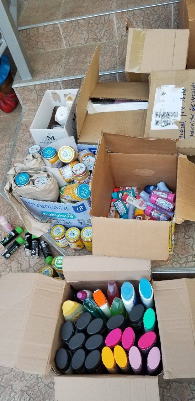 Їжу (консерви, макарони, сухі продукти та інше), побутову хімію (пральні порошки та кондиціонери), (шампуні, зубні пасти, щітки) жіноча та дитяча гігієна, інші необхідні дрібнички; постіль ( подушки, ковдри, простирадла, наволочки), рушники, посуд і побутові прилади; термоси, медичні матеріали, кремати, розкладачку, спальні мішки, іграшки, одяг, взуття (на всі вікові категорії і сезони), гігієнічні засоби