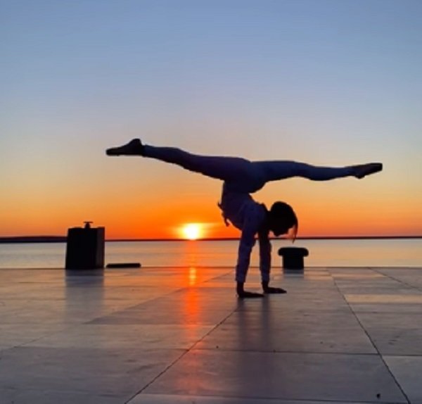 Балерина з Маріуполя затанцювала на фоні заходу сонця над Кременчуцьким водосховищем. Відео опублікували у соцмережах. На ньому видно, як танцівниця на пуантах танцює у Світоводську.