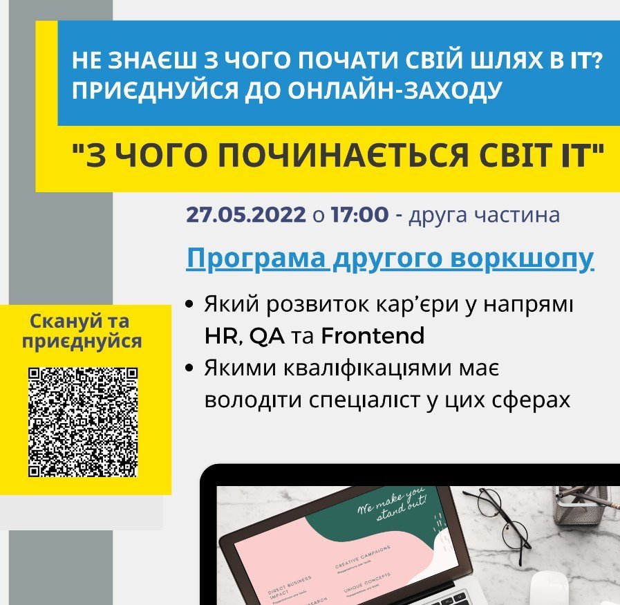 На другій зустрічі будемо говорити про розвиток кар’єри у напрямі HR, QA та Frontend та розкажемо якими кваліфікаціями має володіти спеціаліст у цих сферах.?