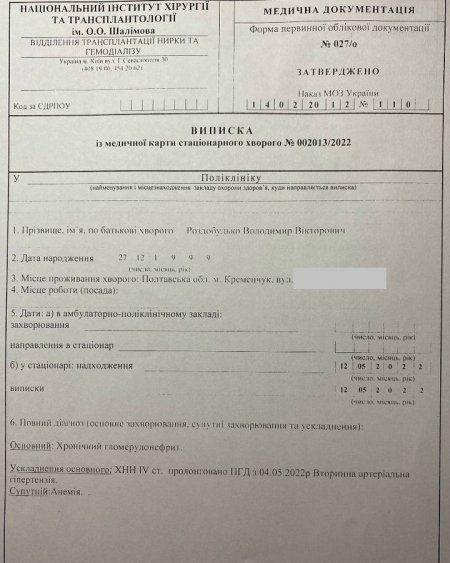 22-річний боксер з Кременчука Володимир Роздбудько потребує пересадки нирки. Наразі спортсмен знаходиться на гемодіалізі. Дівчина спортсмена Анна Тарасенко розповіла Кременчуцькому Телеграфу, що у Володимира піднявся тиск до 200, намагалися знайти причину. Після того як пройшли обстеження, лікарі шокували висновком - хлопець потребує пересадки нирки. Операцію мають зробити у турецькій клініці Medicana hastanesi beylikd?z?. Вартість операції 22 000 євро.