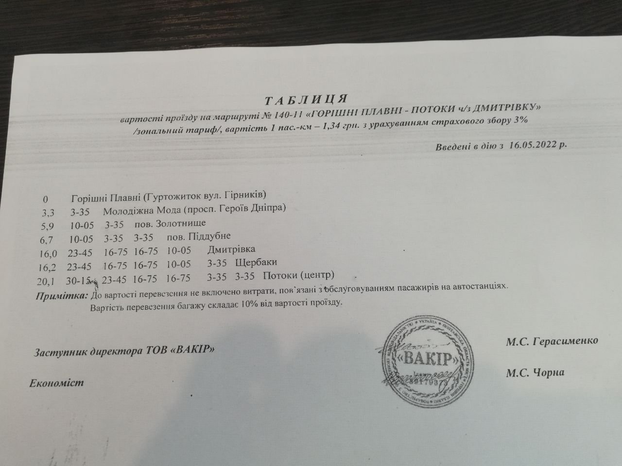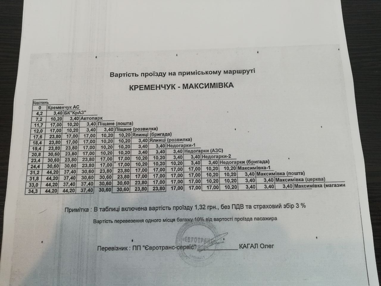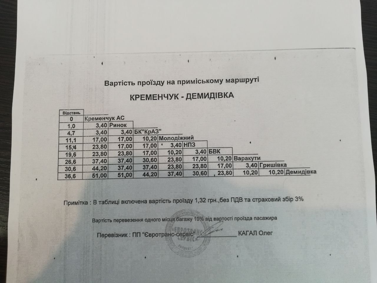 Тарифи по зупинкам від Кременчука до Горішніх Плавнів можна подивитись ТУТ