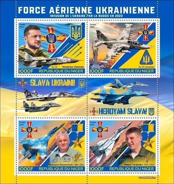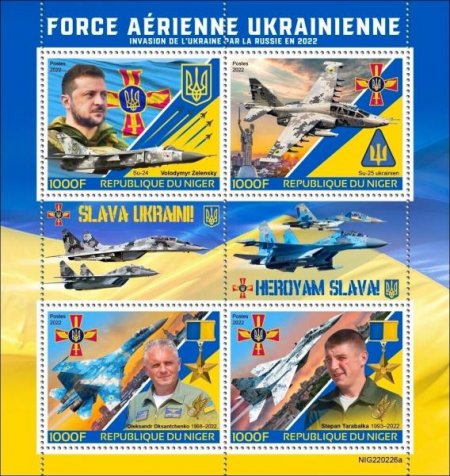 У продажі на ebay доступна серія марок Республіки Нігер, присвячена Повітряним силам ЗСУ, тут зокрема можна побачити марки присвячені Олександру Оксанченку.