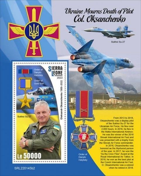 У Сьєрра-Леоне (держава у західній Африці) випустили щонайменше 19 марок на підтримку України, зокрема на честь пілота з Полтавщини Олександра Оксанченка. Про це повідомляє видання «Forbes Україна».