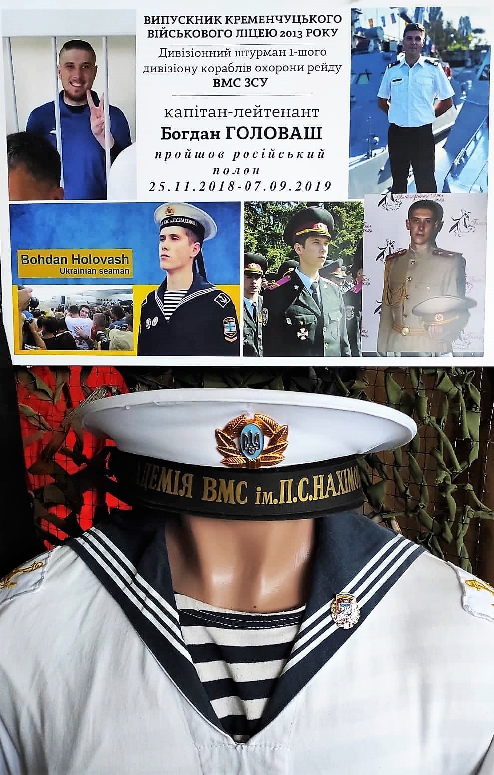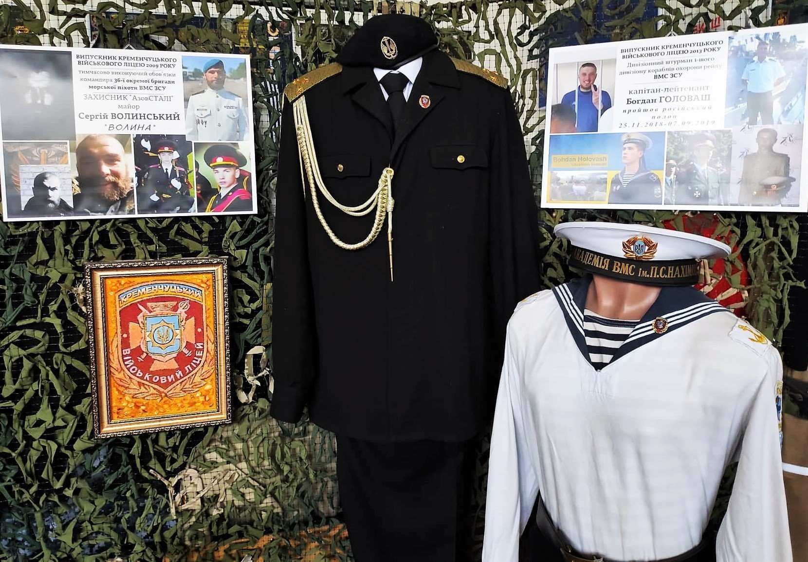 Богдан – випускник Кременчуцького військового ліцею. У військово-історичному музеї ВПУ-7 вже представлена його курсантська форма. А відтепер музей може похвалитися й новим подарунком – польовою формою військового ліцеїста та формою курсанта Академії ВМС ім. Нахімова (4 курс), яку батьки надали для експонування.