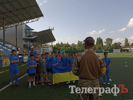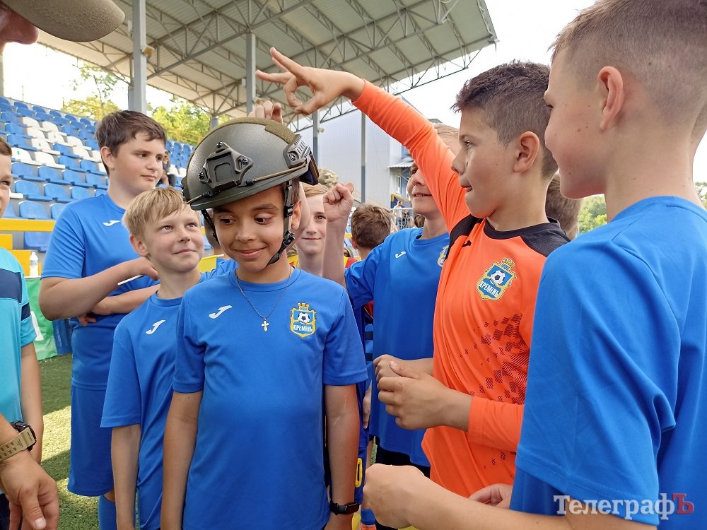 Наприкінці зустрічі юні футболісти «Кременя» приміряли бронежилет та каску, а також подарували військовим прапор України з найкращими побажаннями.
