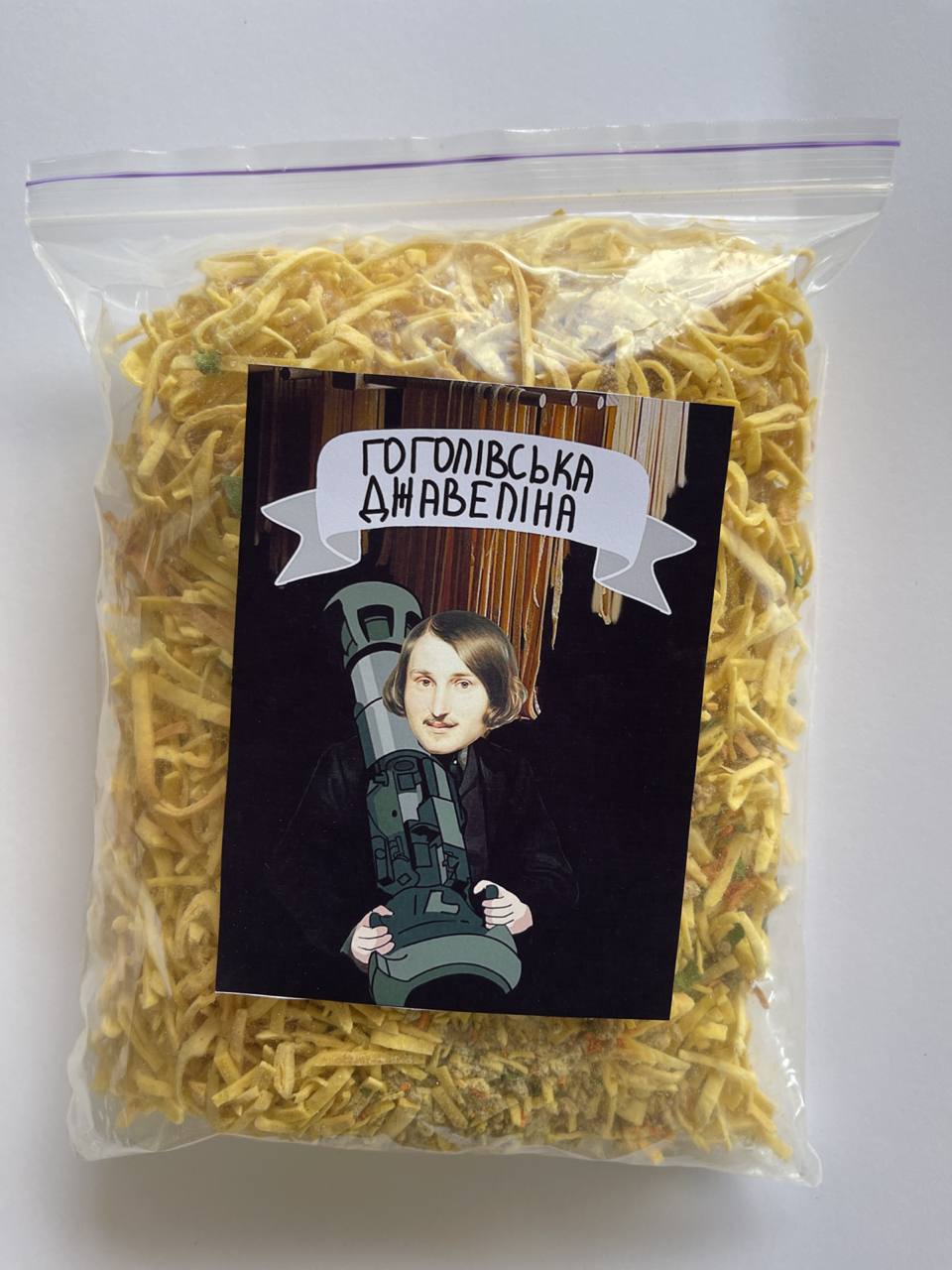 З легкої руки українських господинь локшина з Гоголевого отримала назву «Гоголівська джавеліна». Як розповіли місцеві волонтерки, солдати кажуть, що локшина – «просто вогонь» і вигадують кумедні слогани «Гоголівська джавеліна – це любов і вітаміни», «Гоголівська джавеліна – найсмачніша в Україні», «Гоголівська джавеліна – перемога за хвилину». Це особливо надихає місцевих активісток вдосконалювати виробництво.