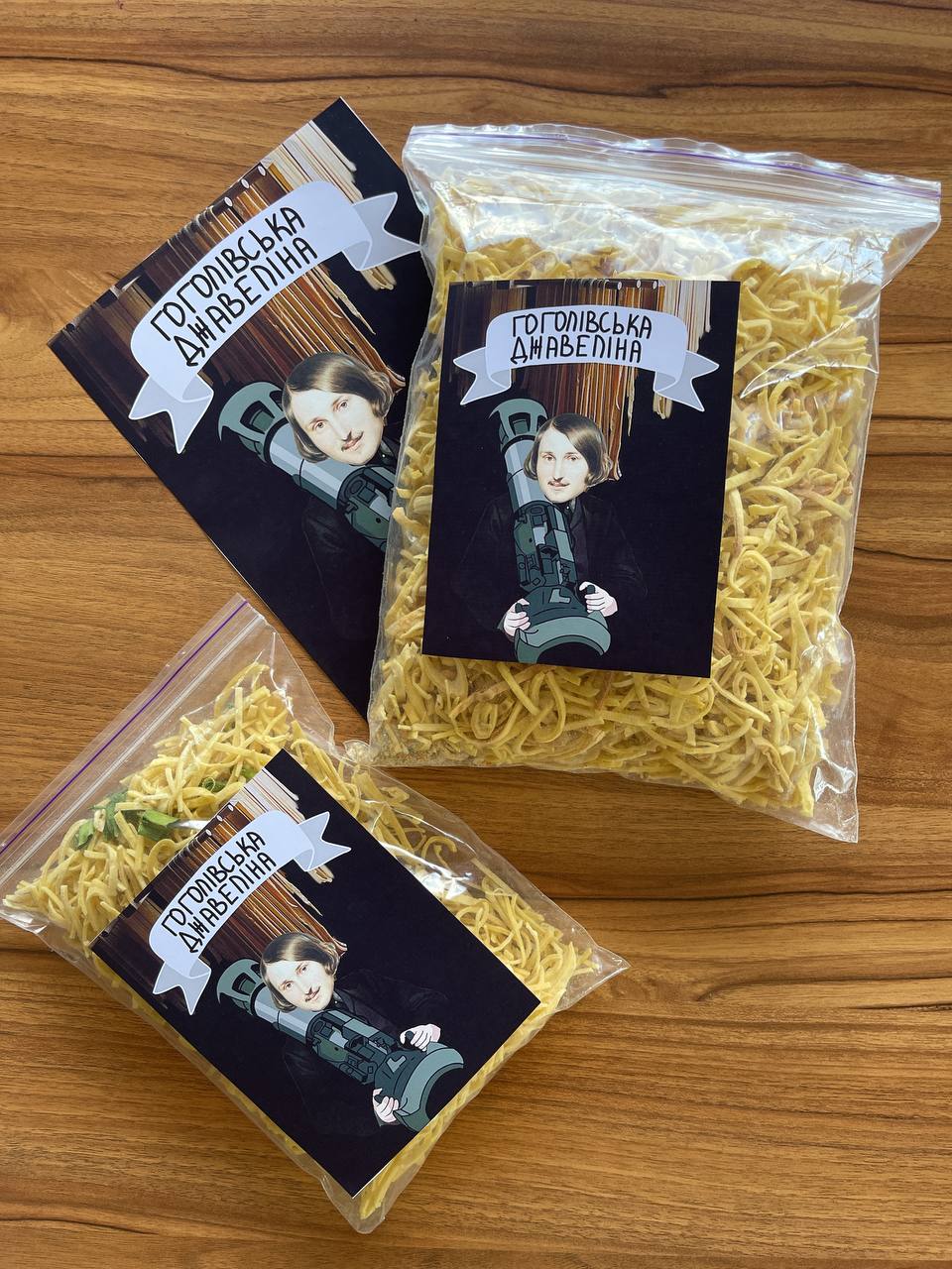 У селищі Гоголеве на Полтавщині волонтерки організації «Гончаренко центр»* разом із місцевими жителями виготовляють домашню локшину швидкого приготування для українських військових. За інформацією пресслужби «Гончаренко центр», з початку війни на фронт вже передали майже тонну локшини, яка отримала назву «Гоголівська джавеліна». Локшина заливається окропом – і за декілька хвилин її можна вживати, як готовий продукт.