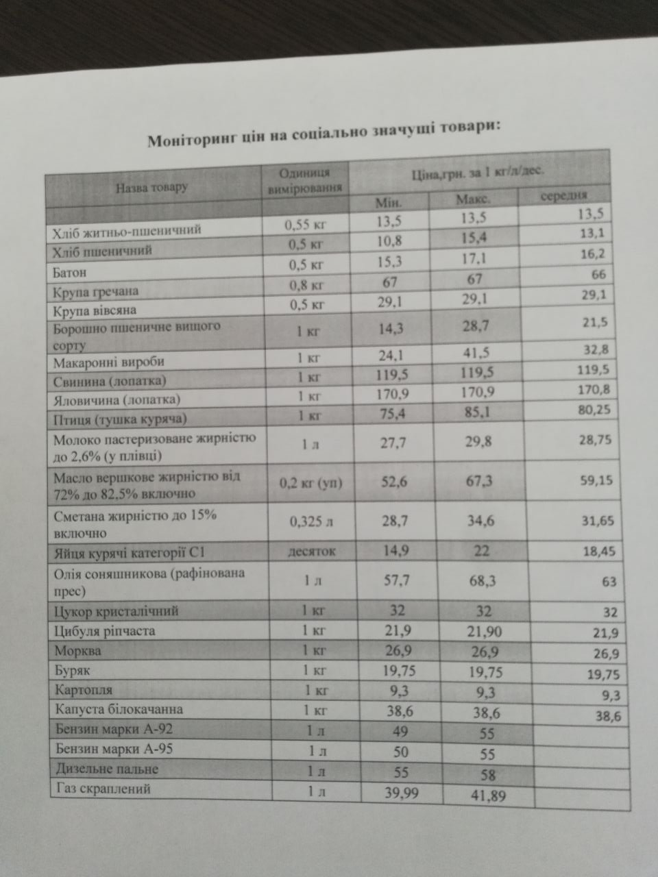 Він повідомив, що протягом тижня працівники районного управління Держпродспоживслужби моніторили ціни на товари соціального значення у Кременчуцькому районі. За їх висновками ціни на продукти та пальне на АЗС є середніми по області та Україні.