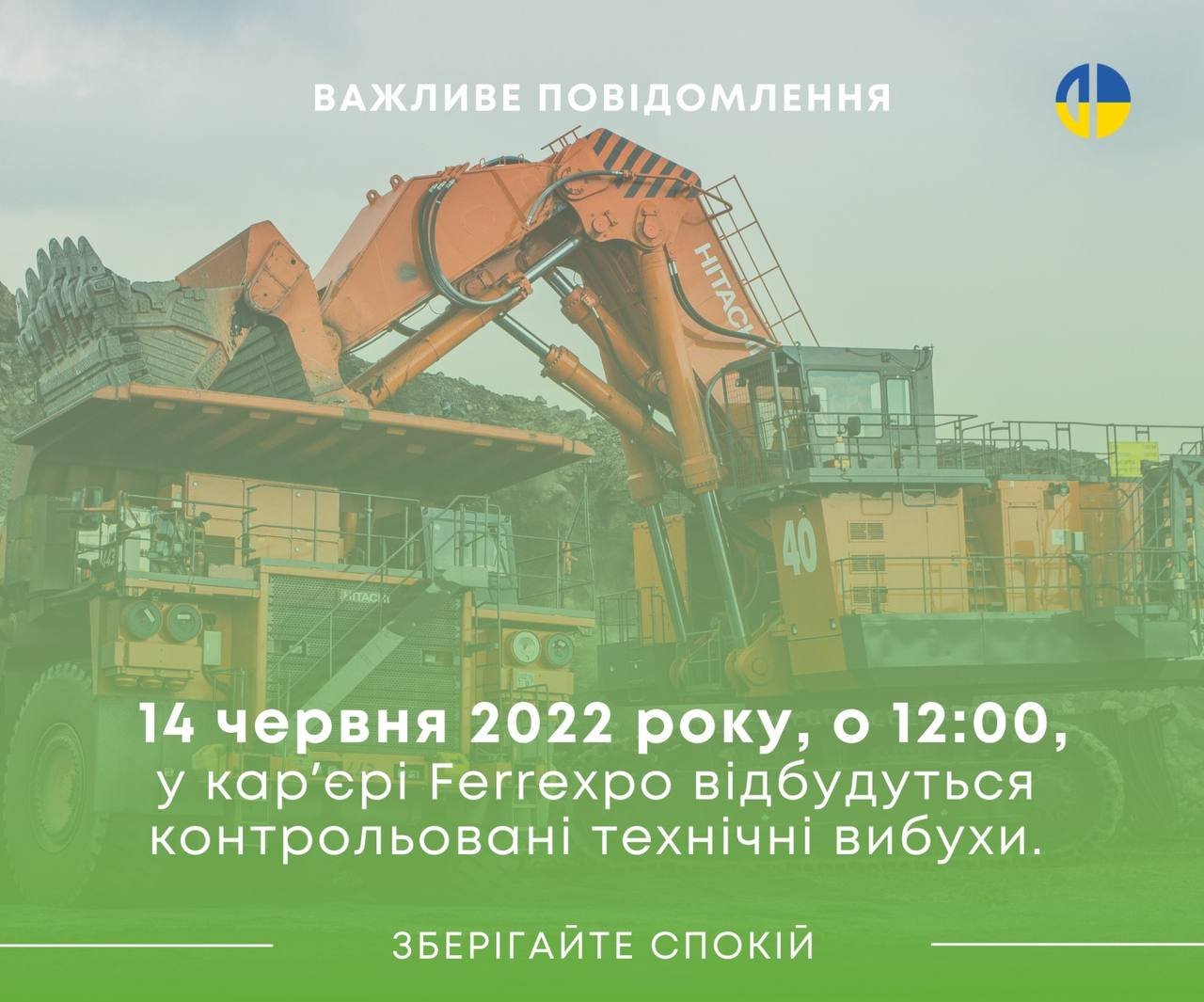 Вибухи на кар’єрах Ferrexpo відбудуться завтра, 14 червня, о 12.00.