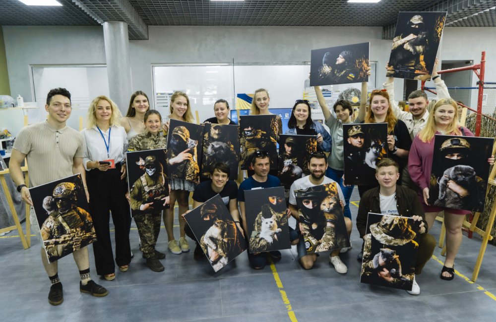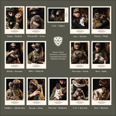 Троє бійців прийшли на фотозйомку зі своїми котами, інших пухнастиків принесли полтавці, які побачили оголошення в інтернеті і вирішили допомогти.
