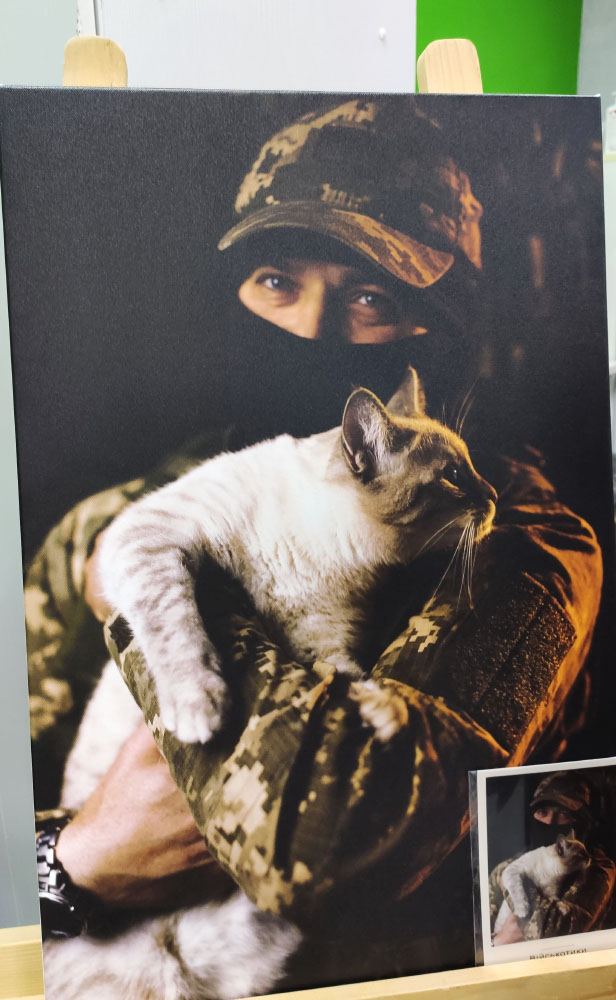 На фото позначені позивний військовослужбовця і ім'я кота. Одна листівка коштує мінімум 100 гривень, але можна давати більше, адже виручені гроші підуть на допомогу ЗСУ.