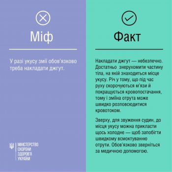 Міф № 1. У разі укусу змії обов’язково треба накладати джгут