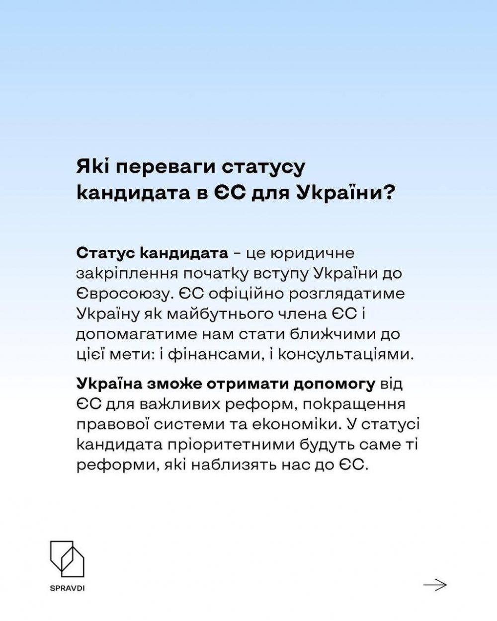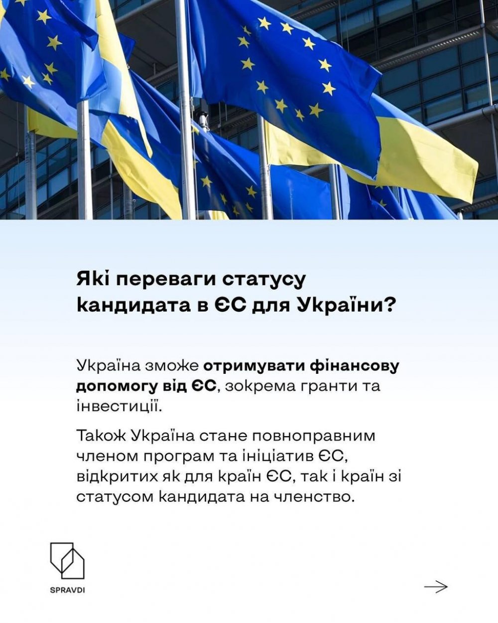 За словами гендиректора, набуття Україною статусу кандидата в члени Євросоюзу юридично закріплює європейську перспективу та відкриває доступ до структурних фондів.
