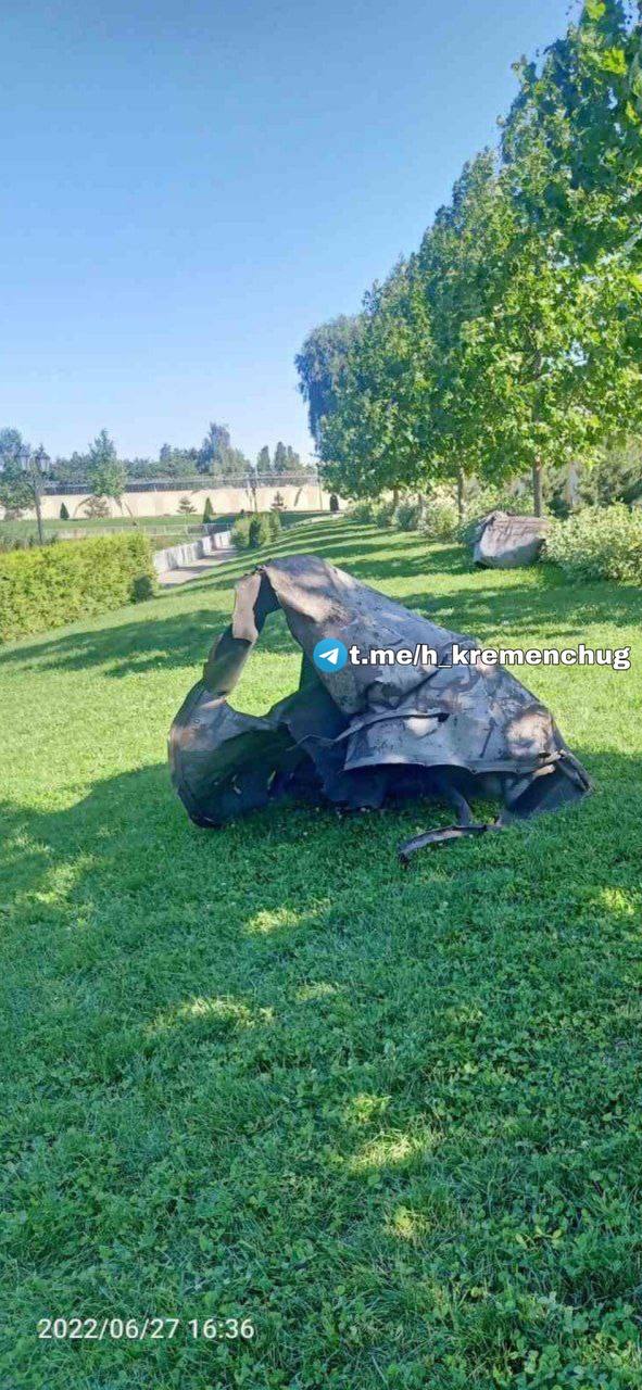 Пізніше у соціальних мережах з’явилися світлини, на яких видно, що великі уламки ракети розкидані по всьому парку.