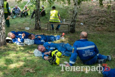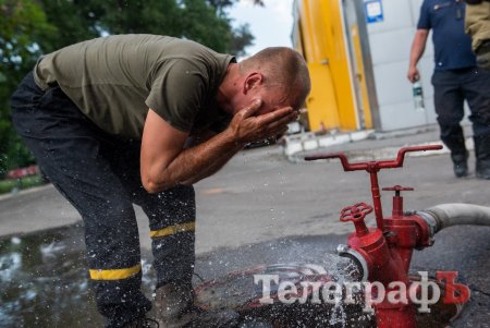 Як просто на землі, підклавши під голову пляшки з водою, відпочивають рятувальники, потерпаючи від спеки, як вмиваються прямо з пожежного гідранта.