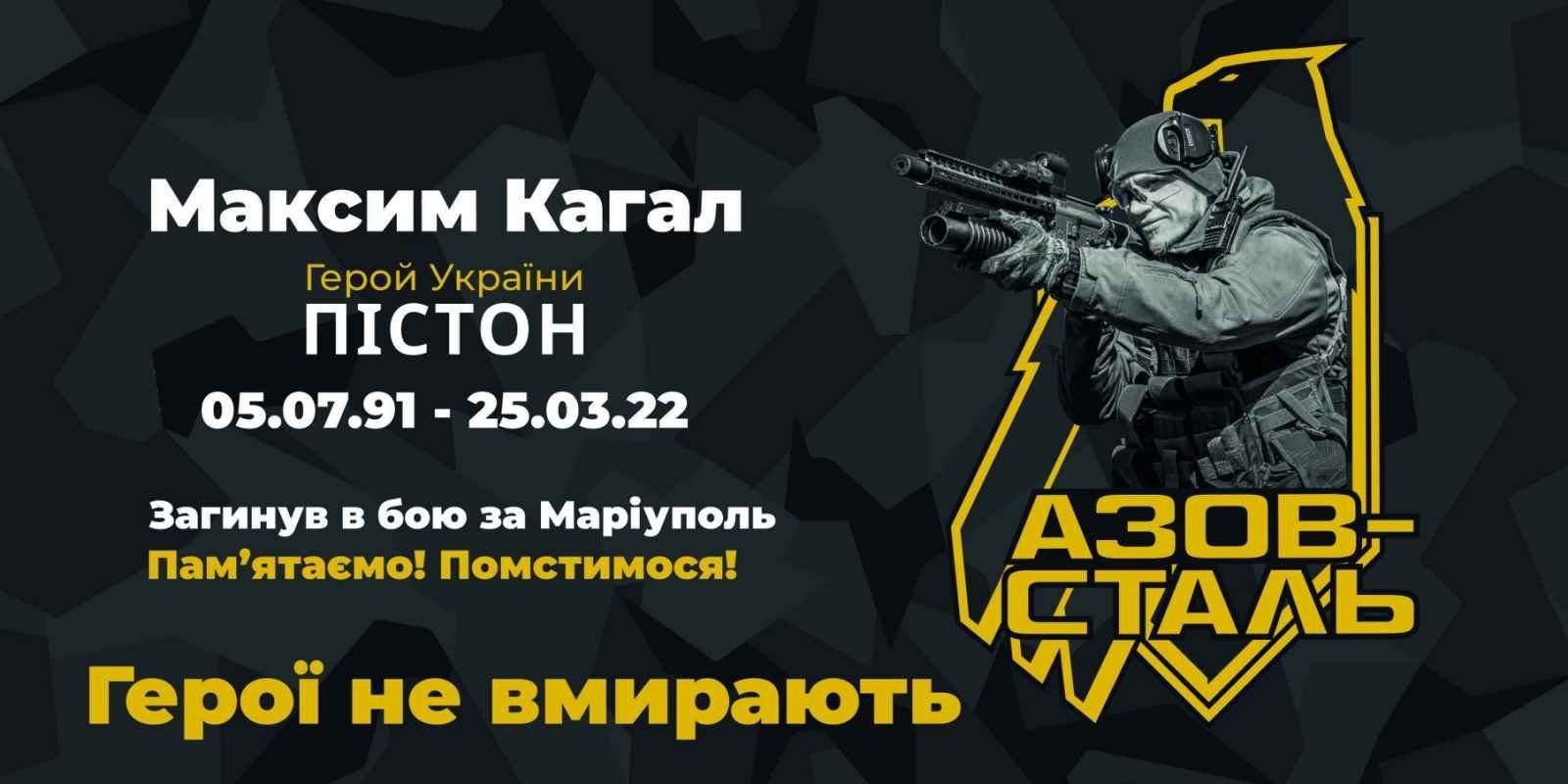 На вулицях Кременчука з’явилися білборди із зображенням воїна Героя України Максимом Кагалом, який загинув при обороні Маріуполя. Один з таких бордів Асоціація реклами Кременчука розмістили біля зруйнованого ТЦ Амстор, куди влучила ракета рашистів.