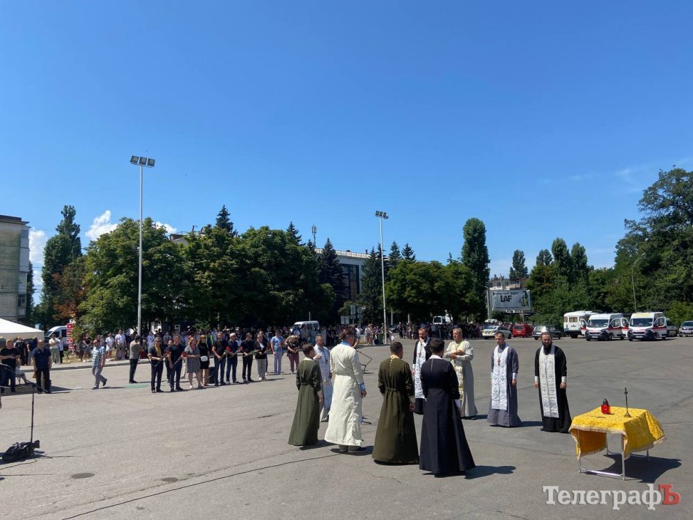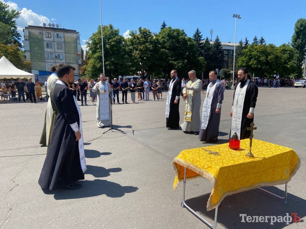 До спільної молитви долучилися рідні загиблих, які тримали в руках портрети своїх дітей, представники влади та небайдужі кременчужани. Громада у затінку під деревами разом з духовенством возносила спільну молитву.