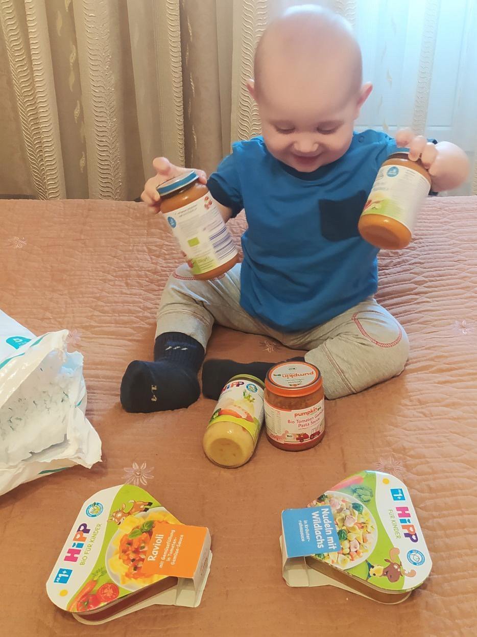 – У кожному пакеті по дві пачки макаронів, крупи, паштет, консерви, дитячі пластівці, цукерки, борошно, цукор, чай або кава.
