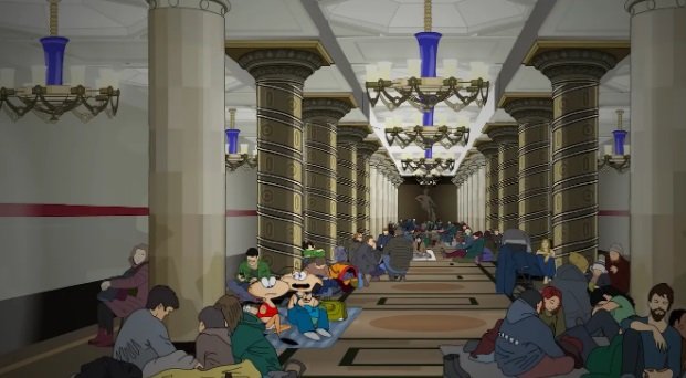 Таким чином вони "переїхали" в метро та підвали сусідніх будинків. На 8 день війни під час приготування їжі між персонажами виникла розмова, з якої глядачі дізналися, що багато росіян евакуювалися в Україну – Бучу, Маріуполь та Кременчук, бо там "безпечно".