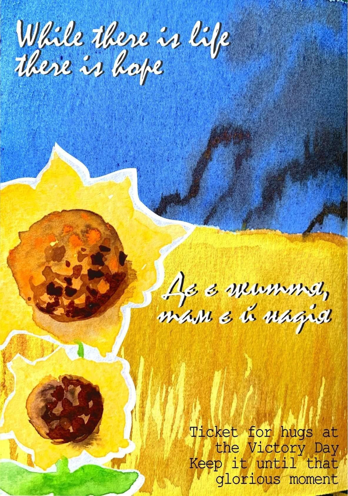 – Мені мало було вголос ще раз озвучити про війну і наше становище. Хотілося чогось, що візьме за душу і буде тримати фокус до кінця війни. Ми з дівчатами разом створили листівку як квиток на обійми у день нашої перемоги. На фініші кожен був з таким квитком і вірою в нашвидку перемогу і міцні обійми. Бо британці настільки щиро і глибоко переймаються війною в Україні, допомагають, донатять та роблять для українців, які зараз в UK, реально неможливі речі, – розповіла Ірина Афоніна.
