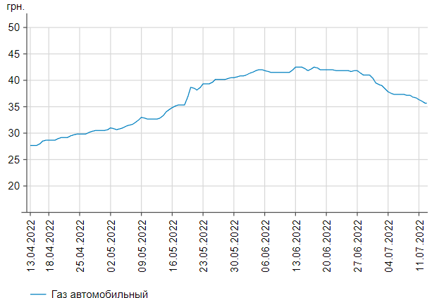 Найменшу ціну на автогаз зафіксовано на станції БРСМ-Нафта в Черкаській області. Там вона складає 27,99 грн/л (-6 грн/л до 12 липня). При цьому середня ціна в мережі — 33,53 грн/л (-0,93 грн/л)
