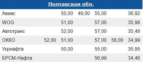 Ціни на заправках Полтавщини станом на 11 липня виглядають так: