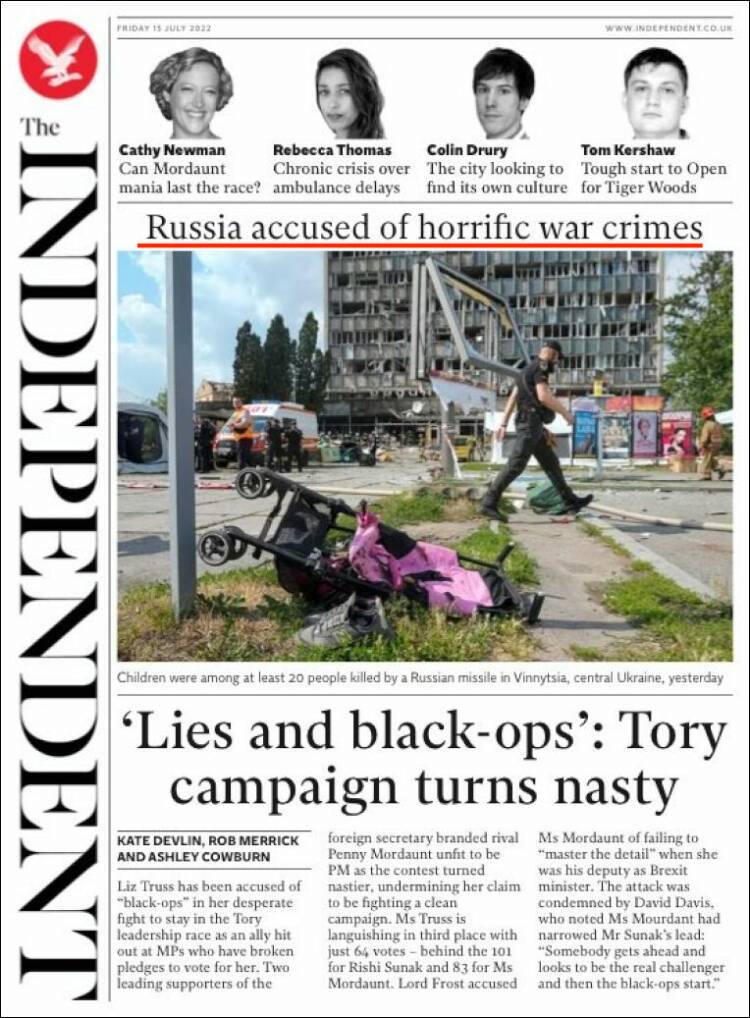 Що світові ЗМІ пишуть про війну росії в Україні? Підбірку перших шпальт за 15 липня 2022 року, які інформують про події в нашій країні, зібрав Cергій Чернявський.