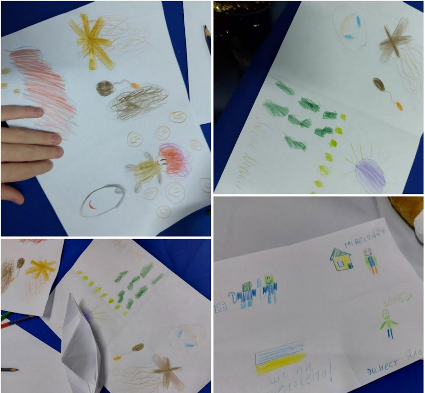 Та перш, ніж перейти до спілкування з Хібукі, діти-учасники тренінгу малювали. Психологи запропонували їм намалювати щось страшне; щось сміливе; а також дивне та смішне. Доцент кафедри психології, педагогіки та філософії КрНУ Ольга Літвінова так пояснила мету цієї вправи: