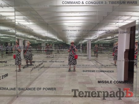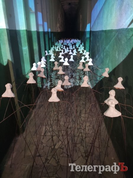 І всюди, за кожним кутком, можна побачити тематичні інсталяції. Людина, яка сидить у клітці, в розпачі тримаючись за голову. Безліч крихітних гіпсових бюстів, що вишикувались посеред коридору. Дзеркальна кімната, яка створює ілюзію безкінечного простору - а на дзеркалах назви комп'ютерних ігор, де йдеться про бункери і тоталітарні режими. Вікно, у яке сріляють ззовні - постріл, звук розбитого скла - і тиша, яка ще довго висить у повітрі.