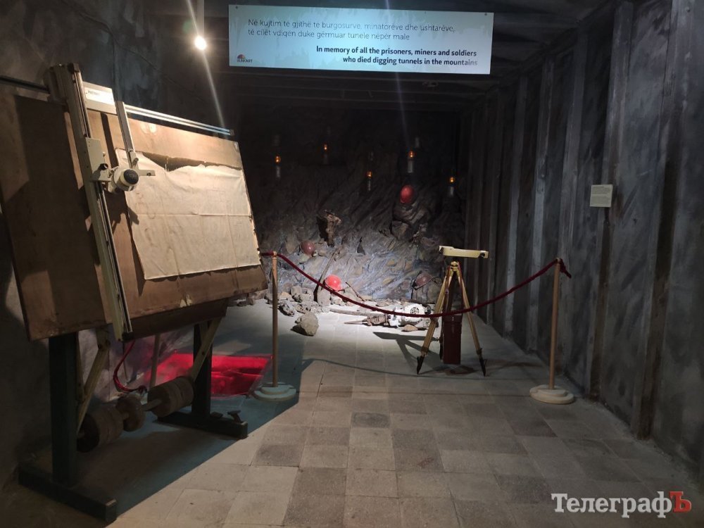 Занурення в атмосферу часів Енвера Ходжи починється ще на підході до самого музею-бункера: до гори веде тунель, пробитий в скелі. Відлуння власних кроків, загадкові звуки, бічні проходи, що ведуть в суцільну темряву – усе це створює відчуття занурення в минуле, у часи, коли тут був таємний військовий об’єкт. Тунель виходить на територію колишньої військової бази. Зараз тут парковка і кіоск, у якому можна придбати квитки та яскраву сувенірну продукцію музею. Вхід до бункеру обійдеться у 500 леків (це приблизно 4 євро). Чемна дівчина показує нам дорогу, яка веде на гору через густий ліс та дає буклетик з фотографією входу у сам бункер.