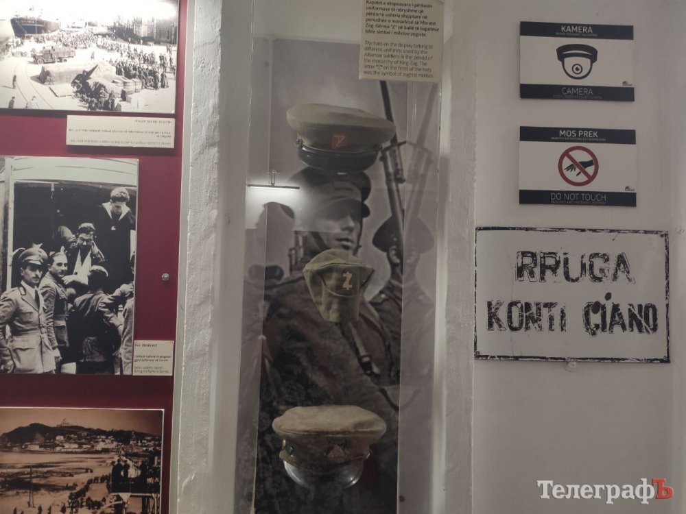 Йдемо довжелезним коридором, з обох боків якого містяться найрізноманітніші приміщення. Увагу привертає військова форма часів правління короля Зогу (1928-1939 р.р.): головні убори прикрашені літерою «z», від чого стає трохи моторошно. Проте це ще «квіточки»: згодом коридорами бункера залунала сирена…